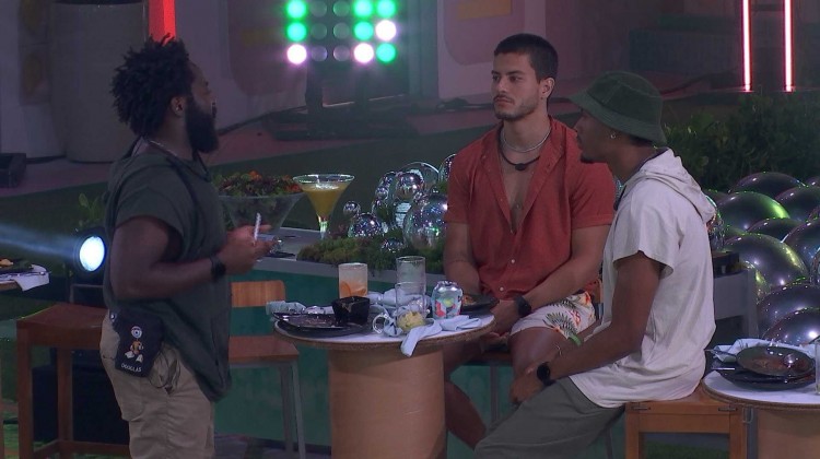 Douglas Silva, Arthur Aguiar e Paulo André estão conversando sobre o jogo durante a Festa Chilli Beans do BBB 22. Os bothers avaliam suas estratégias de jogo, e Douglas Silva diz: "Estou acordando. Não é que eu esteja gigante, mas eu estou acordando. E é isso".