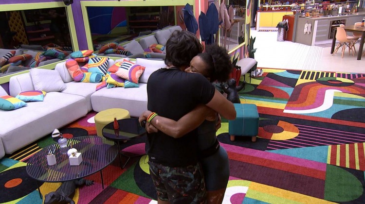 Ela abraça o designer e ele a consola: “Não se sinta assim. Ontem quando ele te perguntou você foi muito clara, você falou que não tinha nada, que você estava de boa, então não se sinta mal, a culpa não foi sua”.