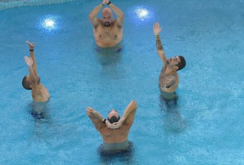 Eliezer, Pedro Scooby, Tiago Abravanel e Vinicius aproveitam a chuva na casa do BBB 22 para curtir ...