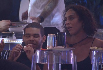 Na Festa do Líder Lucas, Linn da Quebrada está no sofá conversando com Vinicius sobre as semelha...