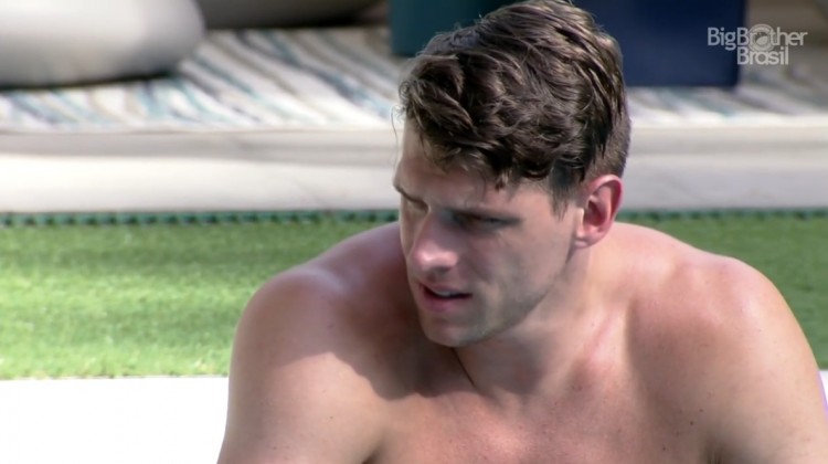 conta para a conversa que teve com o aliado do Quarto Fundo do Mar, Fred Nicácio, rival do lutador no jogo: "Vou te falar uma coisa, ele falou assim: 'Porque eu vi ontem tu conversando com a Paulinha e vocês estavam falando de sete, treze e tal, da configuração que eles [outro grupo] estão agora, né? Nós estamos em dez do outro lado, eles estão em nove. O que é?".