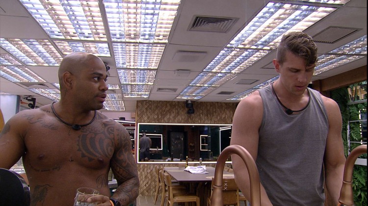 Na cozinha do VIP, Cristian lava a louça, Cezar chega no local e brinca com o brother: "E aí, papai, cheio de assunto aí com você mesmo?".
