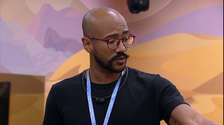 O biomédico segue explicando a situação para os colegas: "Eu pedi pro Gabe [Gabriel Santana] antes dele receber, ele era o segundo, não foi Gabe? Ele não me respondeu, aí eu peguei e falei assim, não foi Gabriel, eu não estava no seu negócio? Aí ele falou: 'Ai nego, não sei', falei, como é que não sabe? Tá se fingindo de doido, é? Não exaltei voz nem nada".