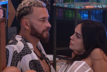 Larissa e Fred conversam em um canto na Festa do Líder, e o jornalista diz que sondou os votos de ...