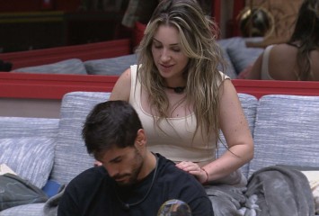 BBB23 - Amanda faz massagem em Cara de Sapato Na sala do 23, faz massagem no lutador , que está...