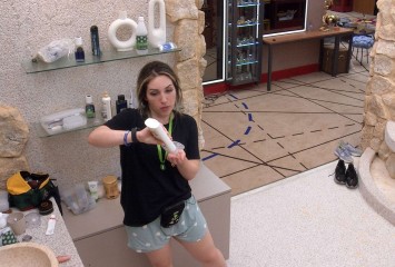 , e estão na cozinha da casa do 23 quando a sister relembra na última festa. Ela demonstra com...